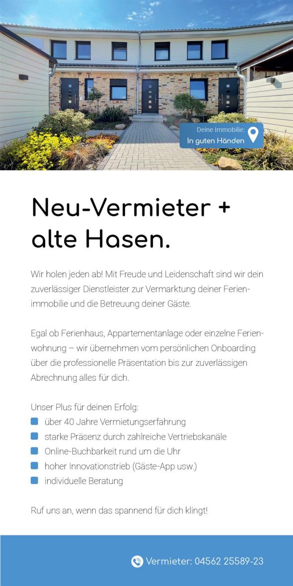 "Wenn du deine Ferienwohnung oder dein Ferienhaus in besten Händen wissen willst, passt du gut zu uns!"